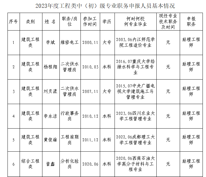 經(jīng)審核,魯亞梅同志符合申報高級政工師任職資格;吳柏霖、張茜、李昊謙3名同志符合申報工程師任職資格;李斌、楊程翔、劉靈漾、李永潔、黃俊雄、曾鑫、郭炯宏7名同志符合申報助理工程師任職資格;倪勇、張雙馳2名同志符合申報助理政工師任職資格。現(xiàn)對其申報基本情況予以公示。公示期限自9月18日至9月22日。如有異議,請在公示期限內(nèi)通過書面或其他形式向公司人力資源部反映。