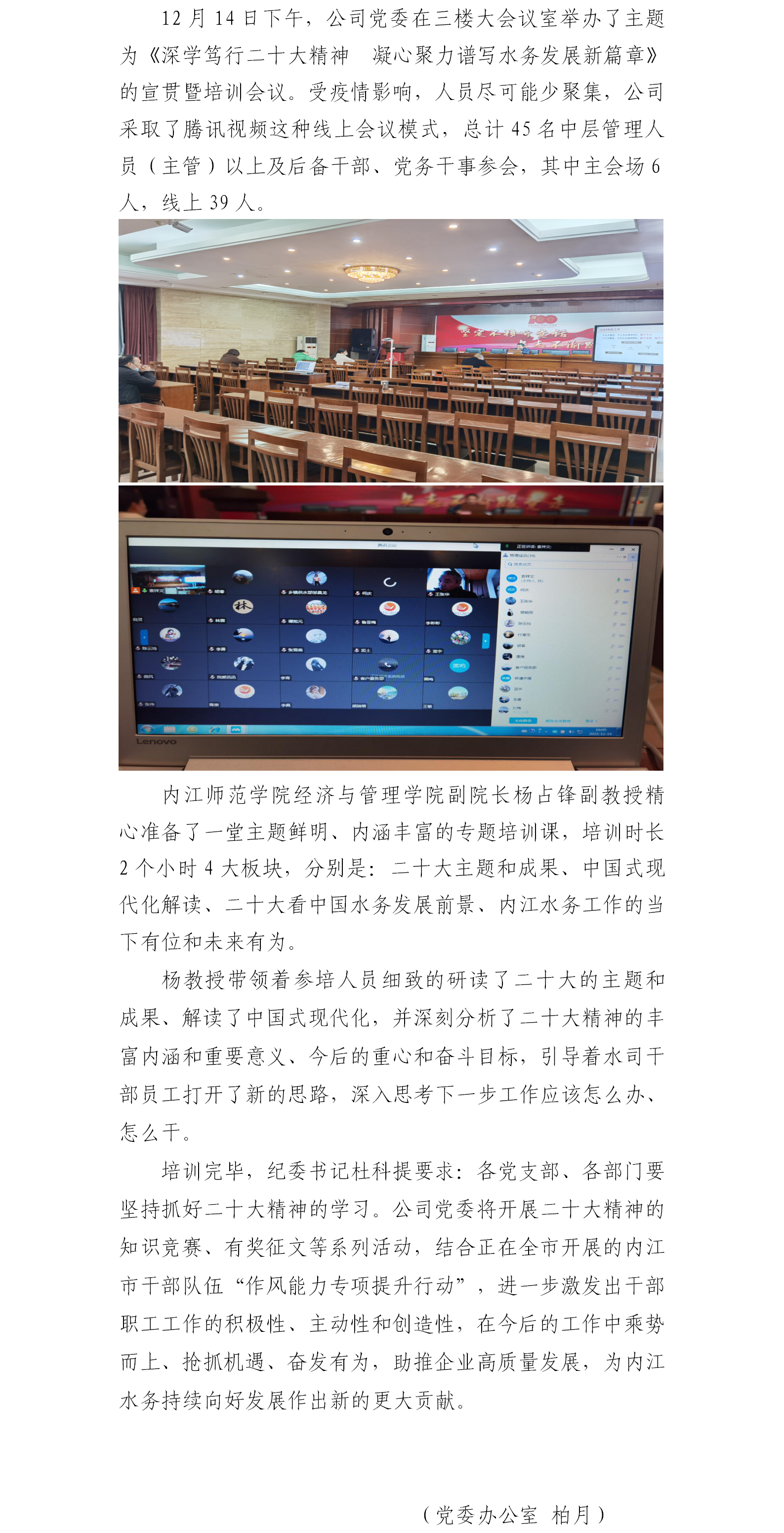 公司黨委舉辦黨的二十大精神宣貫暨干部培訓(xùn)會
