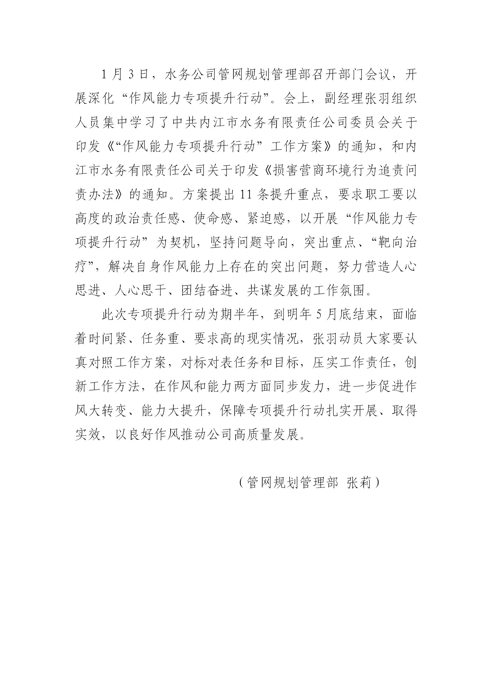 管網(wǎng)規(guī)劃管理部開展《作風能力專項提升行動》宣貫會
