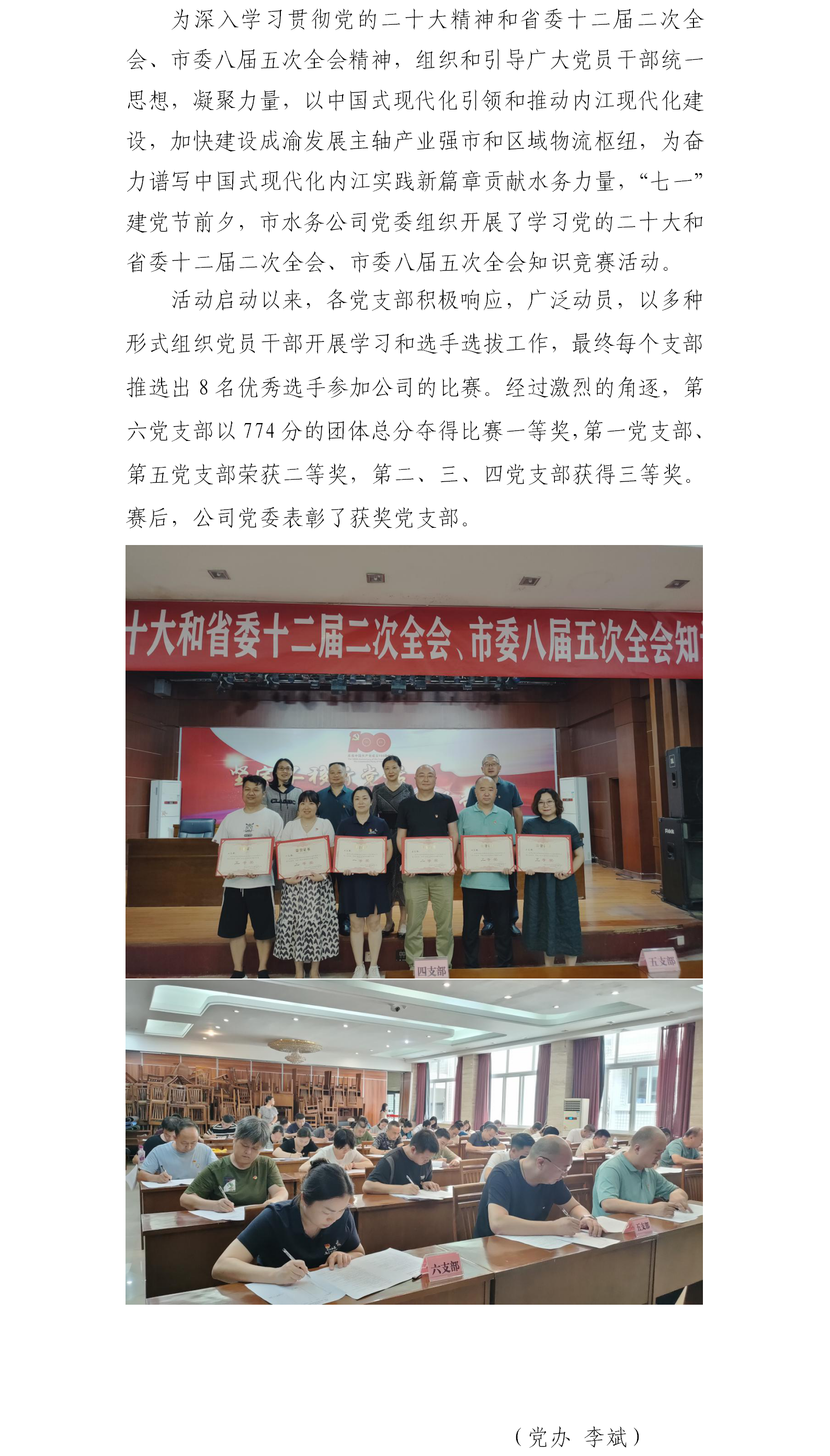 市水務(wù)公司開展黨的二十大和省委十二屆二次全會(huì)、市委八屆五次全會(huì)知識(shí)競賽