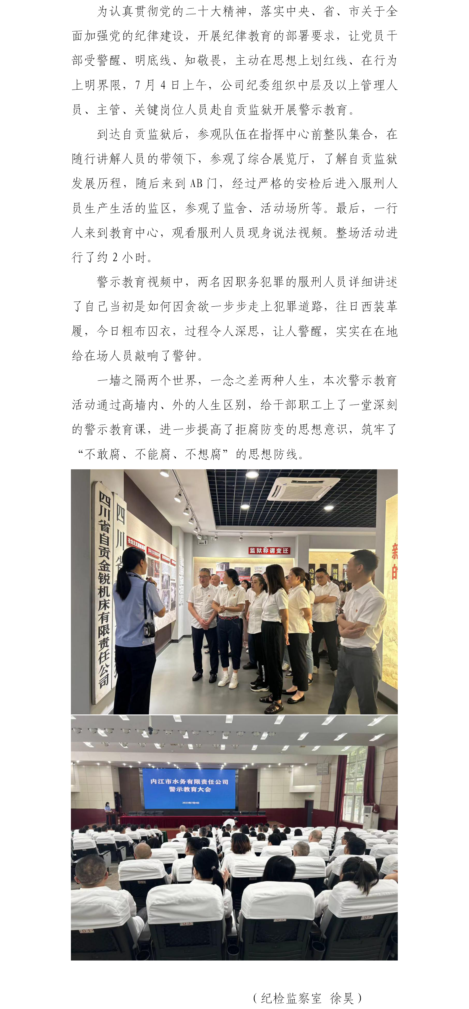 水務(wù)公司干部職工赴自貢監(jiān)獄開展警示教育