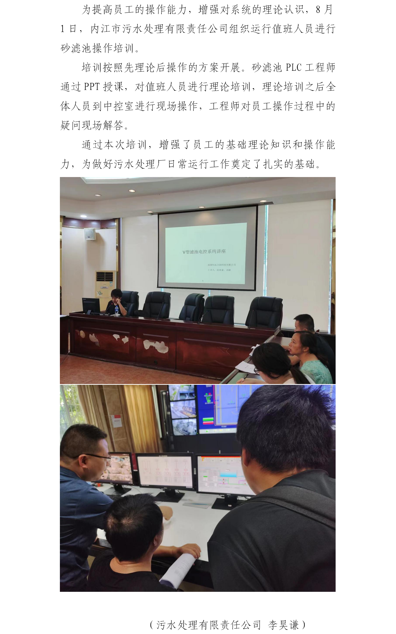 內江市污水處理有限責任公司開展砂濾池操作培訓