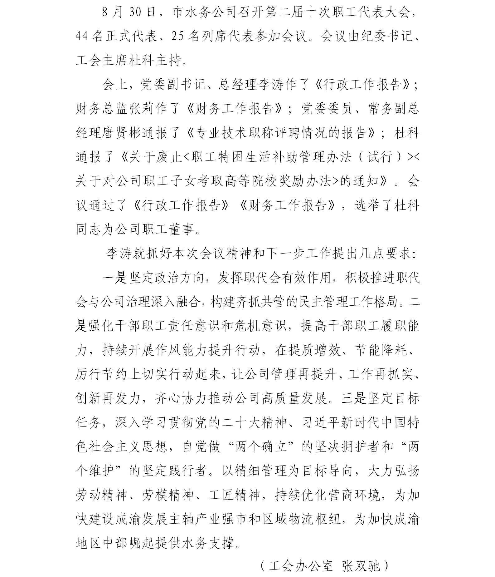 市水務(wù)公司召開(kāi)第二屆十次職工代表大會(huì)
