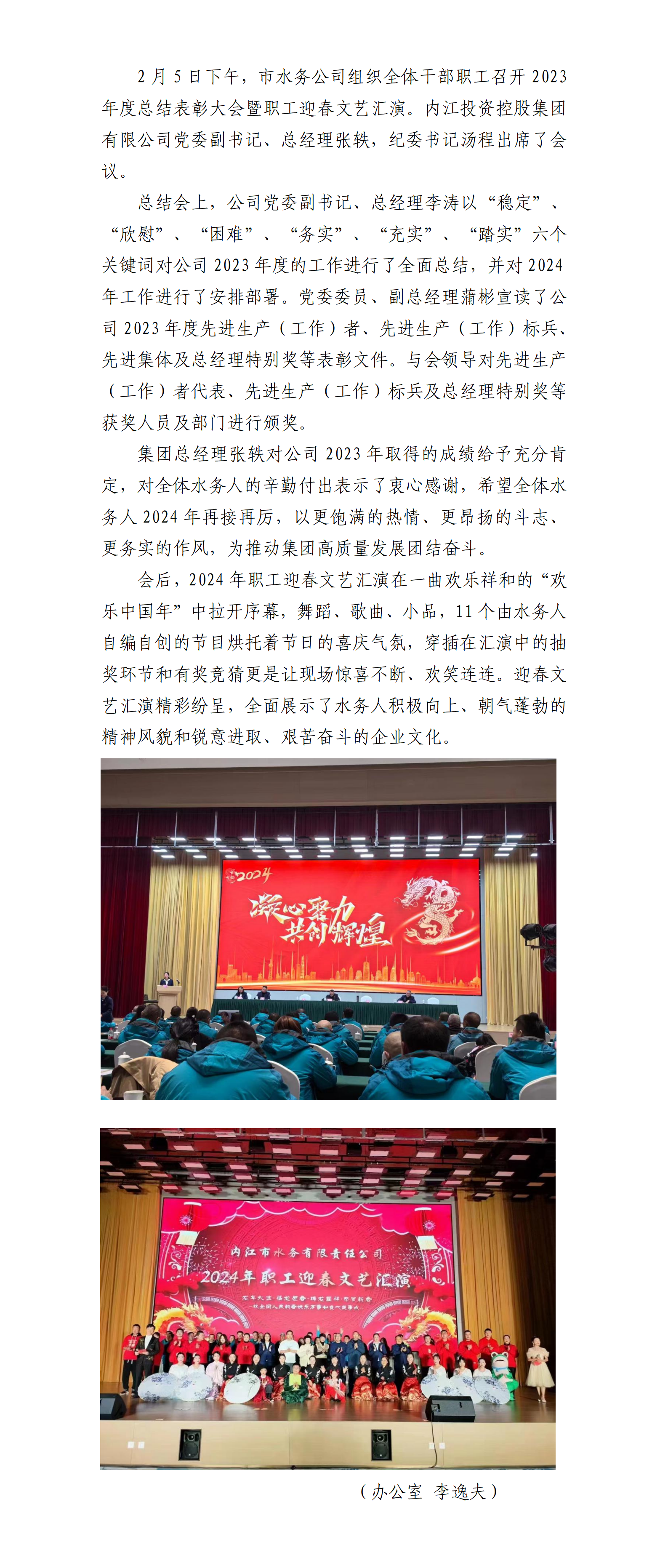 厚植優(yōu)勢(shì) 以進(jìn)促穩(wěn) 市水務(wù)公司召開(kāi)2023年度總結(jié)表彰大會(huì)暨職工迎春文藝匯演